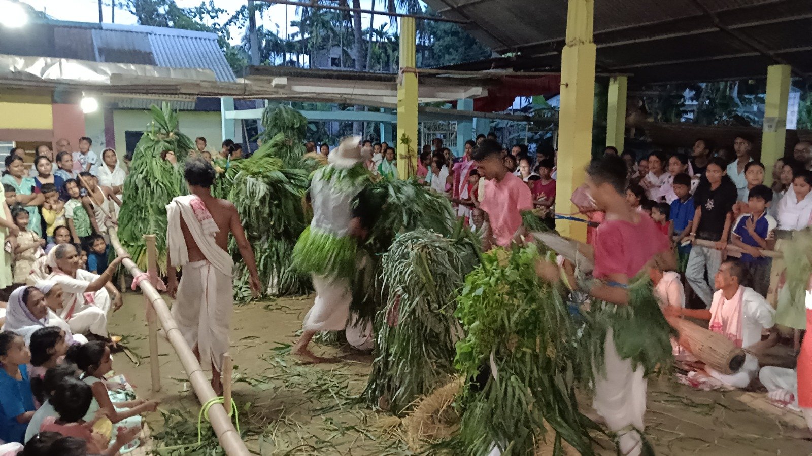 তাক চাবলৈ মাজ জালভাৰীৰ লগতে ওচৰ পাজৰৰ গাঁৱৰ হাজাৰ বিজাৰ মানুহ গোট খায়। ফলত এক উদুলি-মুদুলি পৰিৱেশৰ সূচনা হয় মাজ জালভাৰী গাঁৱৰ চৈধ্য প্ৰসংগীয়া মহাপুৰুষীয়া নামঘৰত।