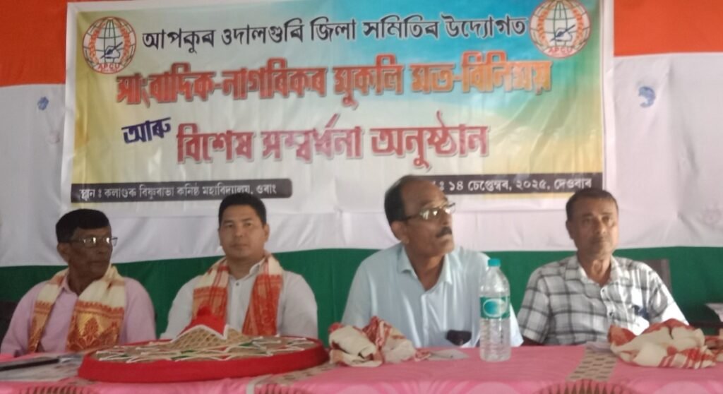 আপকুৰ ওদালগুৰি জিলা সমিতিৰ উদ্যোগত সাংবাদিক-নাগৰিকৰ মুকলি মত-বিনিময় আৰু বিশেষ সম্বৰ্ধনা অনুষ্ঠান