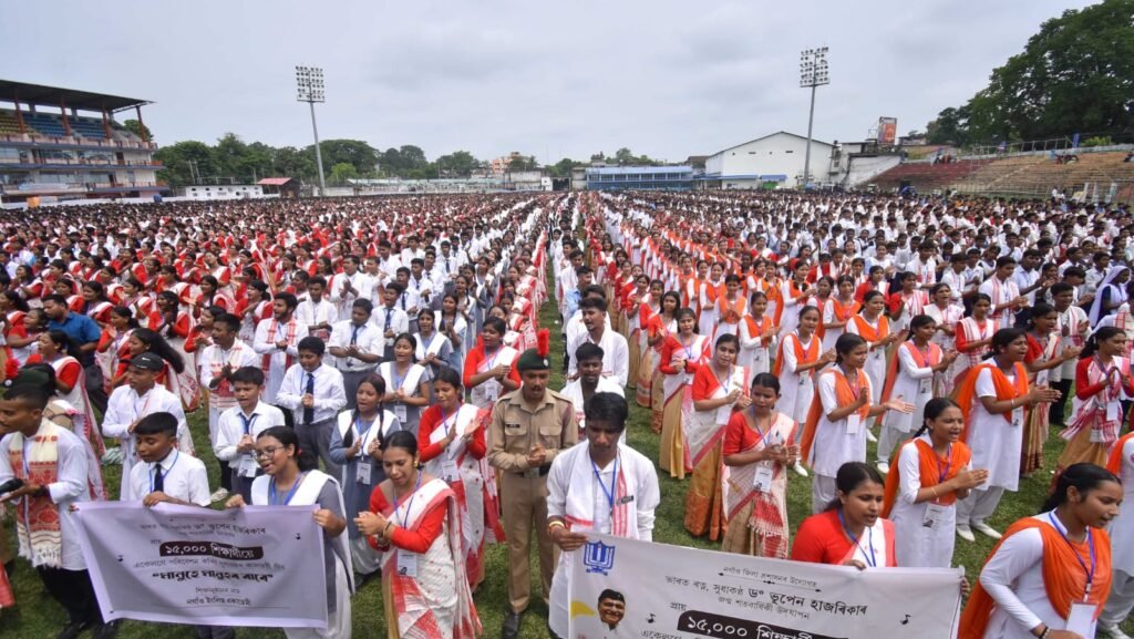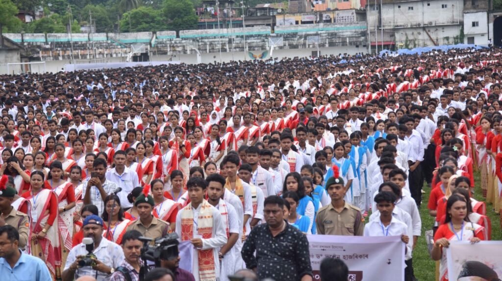 ১৭ হেজাৰ শিক্ষাৰ্থীয়ে সমস্বৰত সুধাকণ্ঠৰ ‘মানুহে মানুহৰ বাবে’ পৰিৱেশন কৰি গঢ়িলে ইণ্ডিয়ান বুক অৱ ৰেকৰ্ডছ