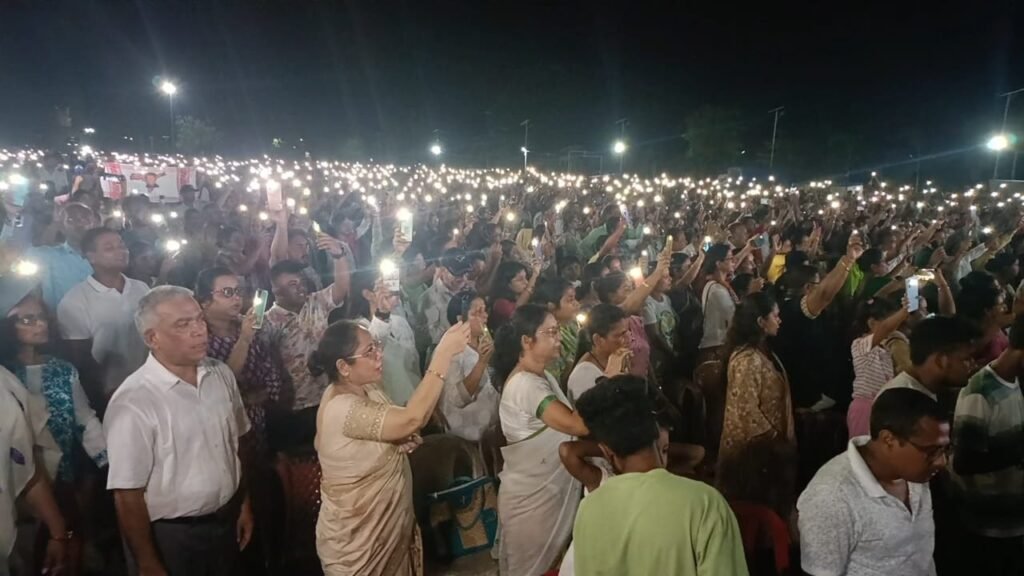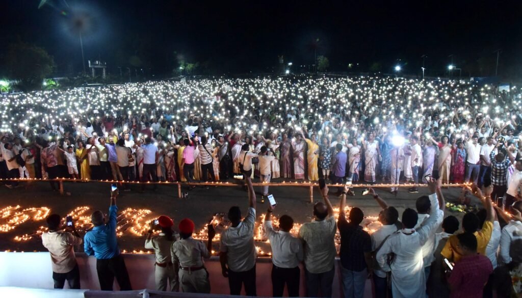 ইয়াৰ পাচত সন্ধিয়া নেহৰুবালিৰ বালিৰ বাকৰিত ২৫ সহস্ৰাধিকৰো অধিক ৰাইজে হাতে হাতে ম’বাইলৰ ফ্লাছ লাইট জ্বলাই পৰিবেশন কৰিলে জুবিন গাৰ্গৰ ”মায়াৱিনী ৰাতিৰ বুকুত ,দেখা পালো তোমাৰ ছবি….’ গীতটি।