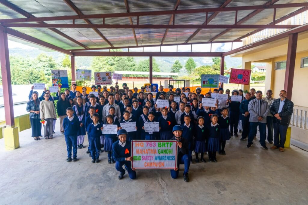 Tawang, ARUNACHAL PRADESH, 3 October: On the occasion of Gandhi Jayanti, 763 Border Roads Task Force (BRTF), Project Vartak, in collaboration with Govt. School Kitpi and the Tawang District Education Department, organised a Road Safety Awareness Campaign to instill discipline and responsibility among road users.