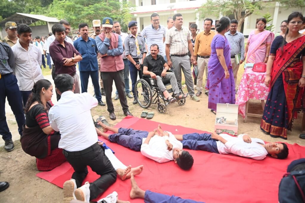এছ.ডি.আৰ.এফ. বাহিনী আৰু ‘আপদা মিত্ৰ’ৰ সহায়ত, আঘাতপ্ৰাপ্ত ছাত্ৰ-ছাত্ৰীক কেনেদৰে উদ্ধাৰ কৰি বাহিৰলৈ অনা হয় আৰু শিক্ষক-শিক্ষয়িত্ৰীসকলৰ দ্বাৰা কেনেদৰে তাৎক্ষণিকভাৱে প্ৰাথমিক চিকিৎসা প্ৰদান কৰিব পাৰি, সেই বিষয়েও প্ৰশিক্ষণ প্ৰদান কৰা হয়।
