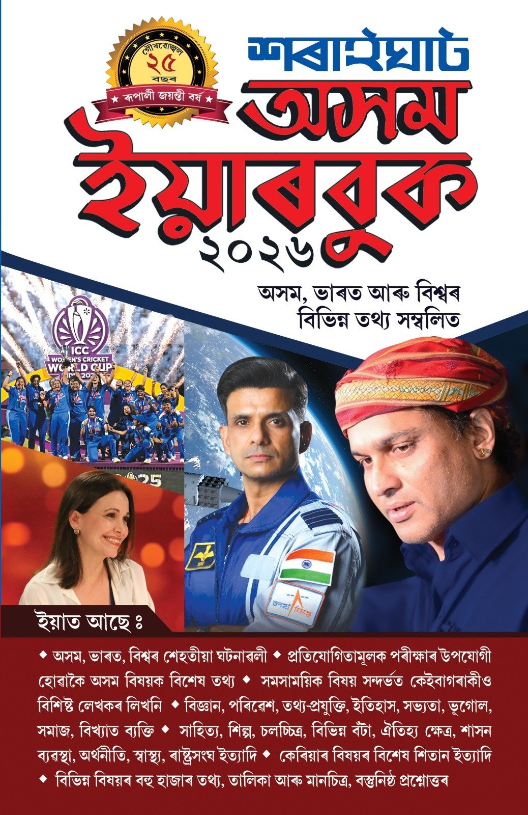 DD TIMES গুৱাহাটী, ৩ জানুৱাৰীঃ অসমীয়া ভাষাত প্ৰকাশিত প্ৰথম ইয়েৰবুক ‘শৰাইঘাট অসম ইয়াৰবুক’এ ৰূপালী জয়ন্তী বৰ্ষত ভৰি দিলে। ২০০২ চনত প্ৰথমবাৰৰ বাবে প্ৰকাশ পোৱা শৰাইঘাট অসম ইয়াৰবুক-২০২৬ গ্ৰন্থখনৰ এইবেলি তথ্যৰ মেটমৰা সম্ভাৰেৰে ২৫ সংখ্যক বৰ্ষৰ সংস্কৰণ প্ৰকাশ পাইছে।