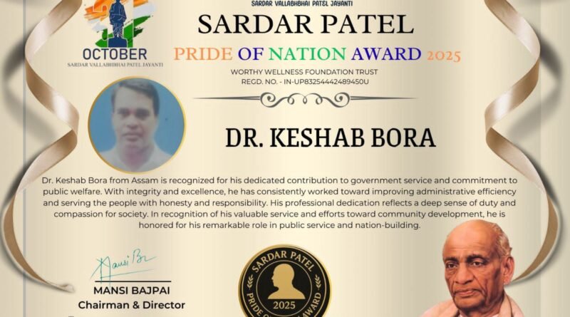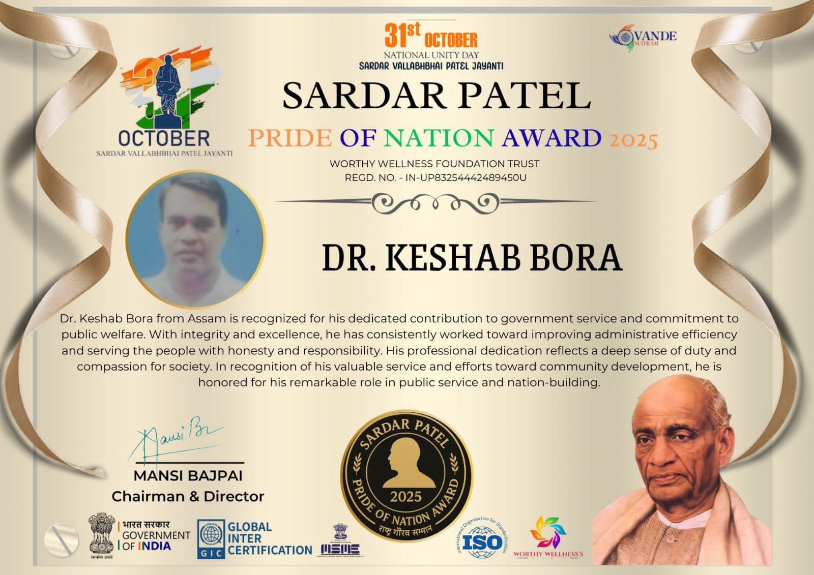 AWARD 2025: লেখক ড° কেশৱ বৰালৈ ‘চৰ্দাৰ বল্লভভাই পেটেল আৰু অখণ্ড ভাৰত সন্মান’