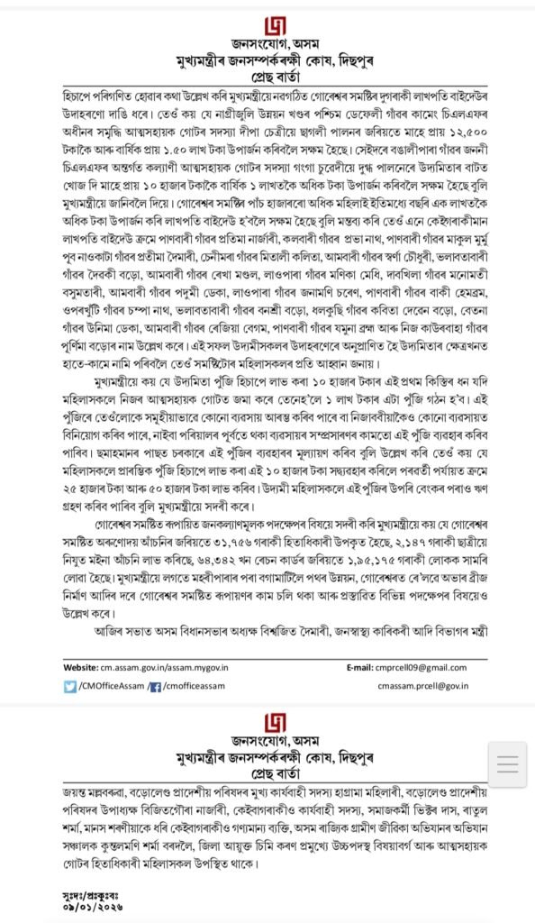 The Chief Minister further stated that more than 5,000 women in the Goreswar constituency have already become Lakhpati Baideos by earning over Rs. 1 lakh annually.