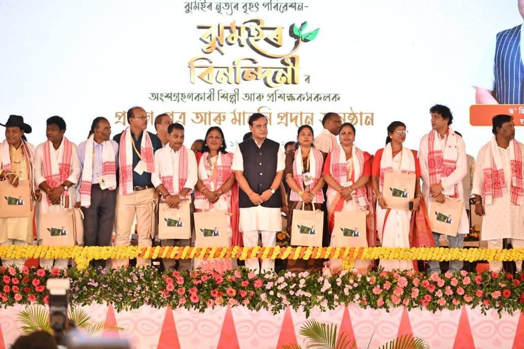 It may be noted that on February 24, in presence of Prime Minister Narendra Modi, 29 members of the expert committee, 7,539 artistes, and 358 trainers or master trainers successfully presented “Jhumoir Binandini” at the Arjun Bhogeswar Barua Sports Complex. Through today’s event, members of expert committees, trainers, and artistes from 24 of the 27 districts received certificates of honour, appreciation and incentives.