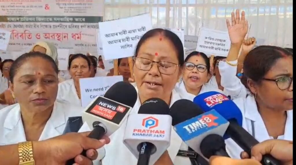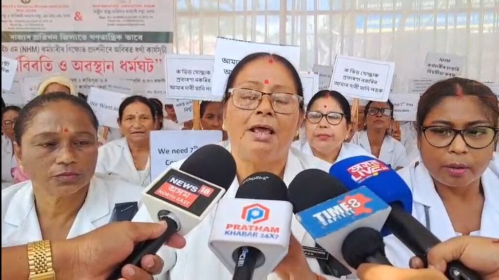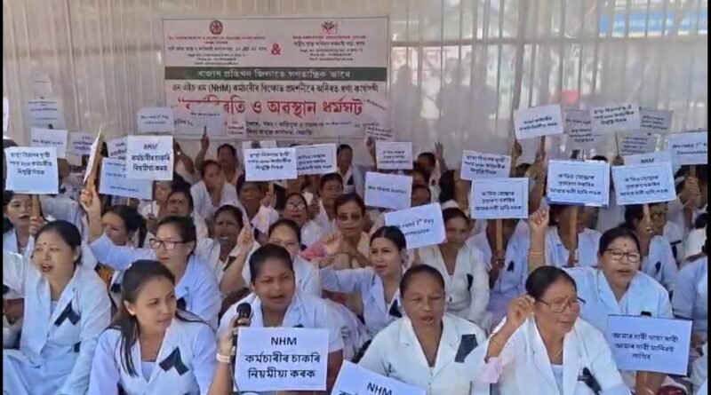 ধেমাজিত সম কাম সম দৰমহা তথা চাকৰি নিয়মীয়াকৰণৰ দাবীত NHM কৰ্মীৰ আজিৰ পৰা তিনিদিনীয়া কৰ্মবিৰতি