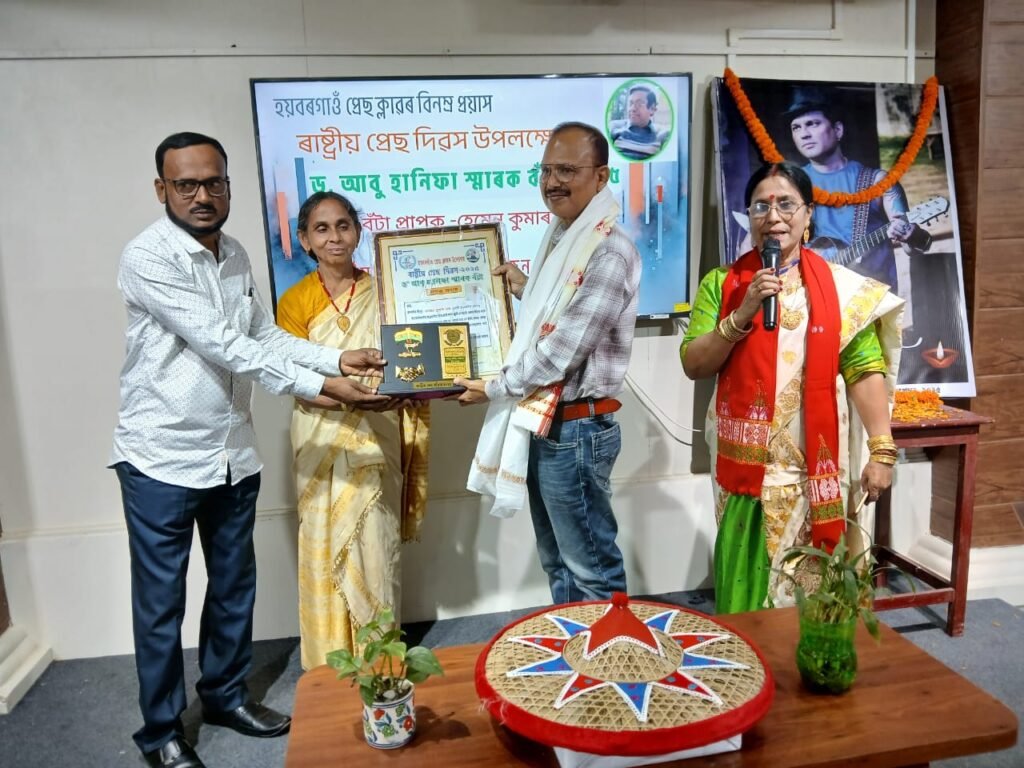 নগাঁৱৰ জ্যেষ্ঠ সাংবাদিক হেমেন কুমাৰ দাসক ‘ড° আবু হাণিফা স্মাৰক সাংবাদিকতা বঁটা’ প্ৰদান