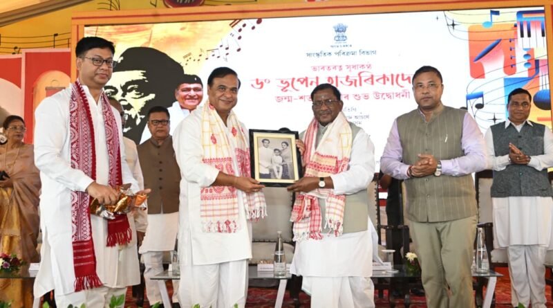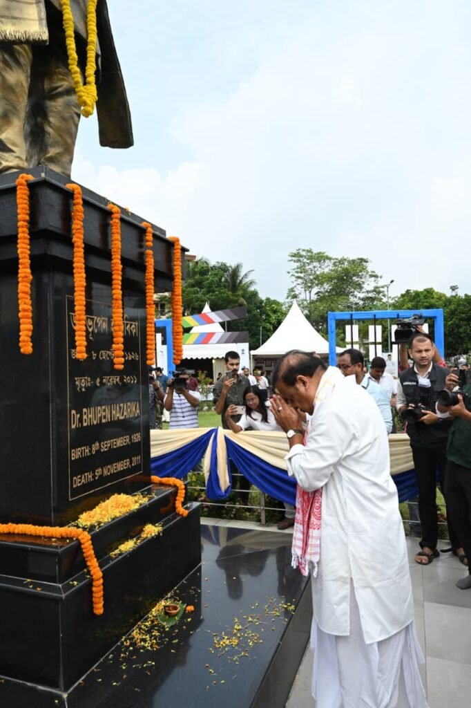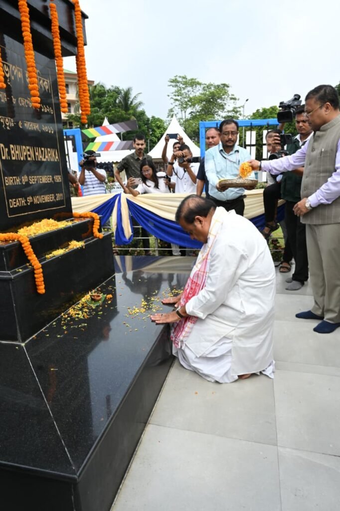 Dispur, September 8: Chief Minister Dr. Himanta Biswa Sarma along with Governor Shri Lakshman Prasad Acharya today paid rich tributes to Sudhakantha Dr. Bhupen Hazarika on behalf of the people of the state on the occasion of inauguration of his birth centenary celebrations at Dr. Bhupen Hazarika Samannay Tirtha at Jalukbari.