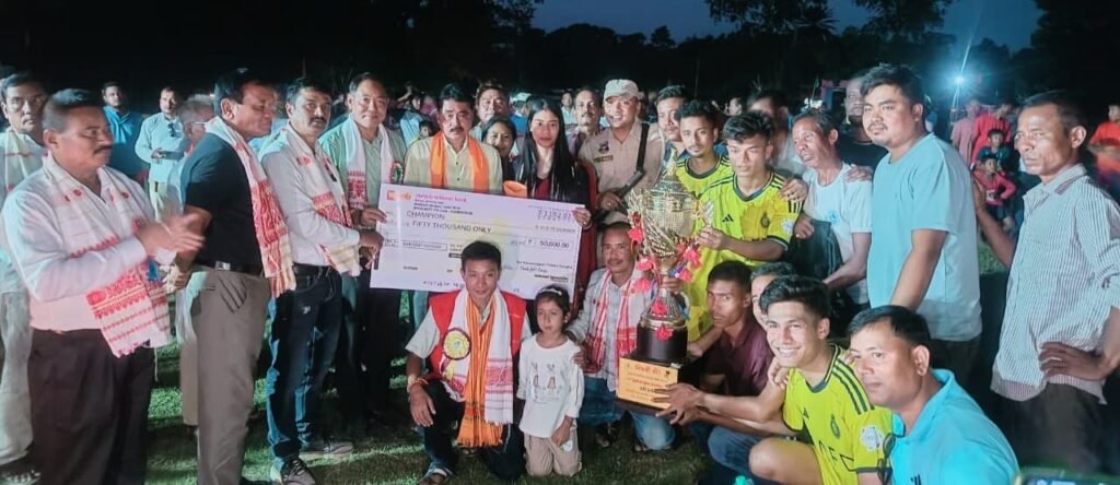 DD TIMES নগাঁও, ২৪ অক্টোবৰঃ মৰিগাঁও জিলাৰ কোঁৱৰগাঁও ত্ৰিবেণী সংঘৰ উদ্যোগত আৰু কোঁৱৰগাঁওবাসী ৰাইজৰ সহযোগত কোঁৱৰগাঁও খেলপথাৰত বৃহস্পতিবাৰে সফলতাৰে সমাপ্তি ঘটা ষষ্ঠ বাৰ্ষিক ত্ৰিবেণী কাপ ফুটবল প্ৰতিযোগিতাত দীঘলবড়ী জে বি এছ এফ চিয়ে চূড়ান্ত বিজয়ী খিতাপ অৰ্জন কৰিছে৷