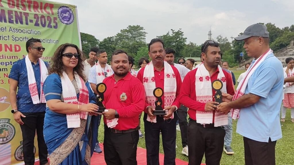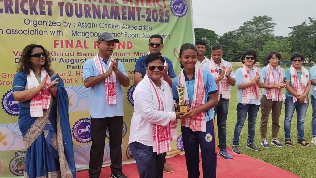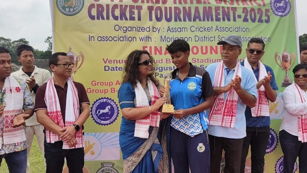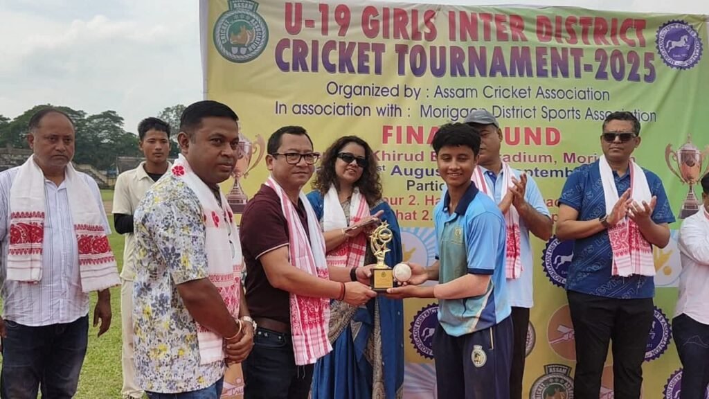 The prize distribution ceremony was attended by Assam Cricket Association Vice President Rajdeep Oja, Treasurer Chiranjit Langthasa, Apex Council Member Minu Begum, and officials from the Morigaon District Sports Association, among others.