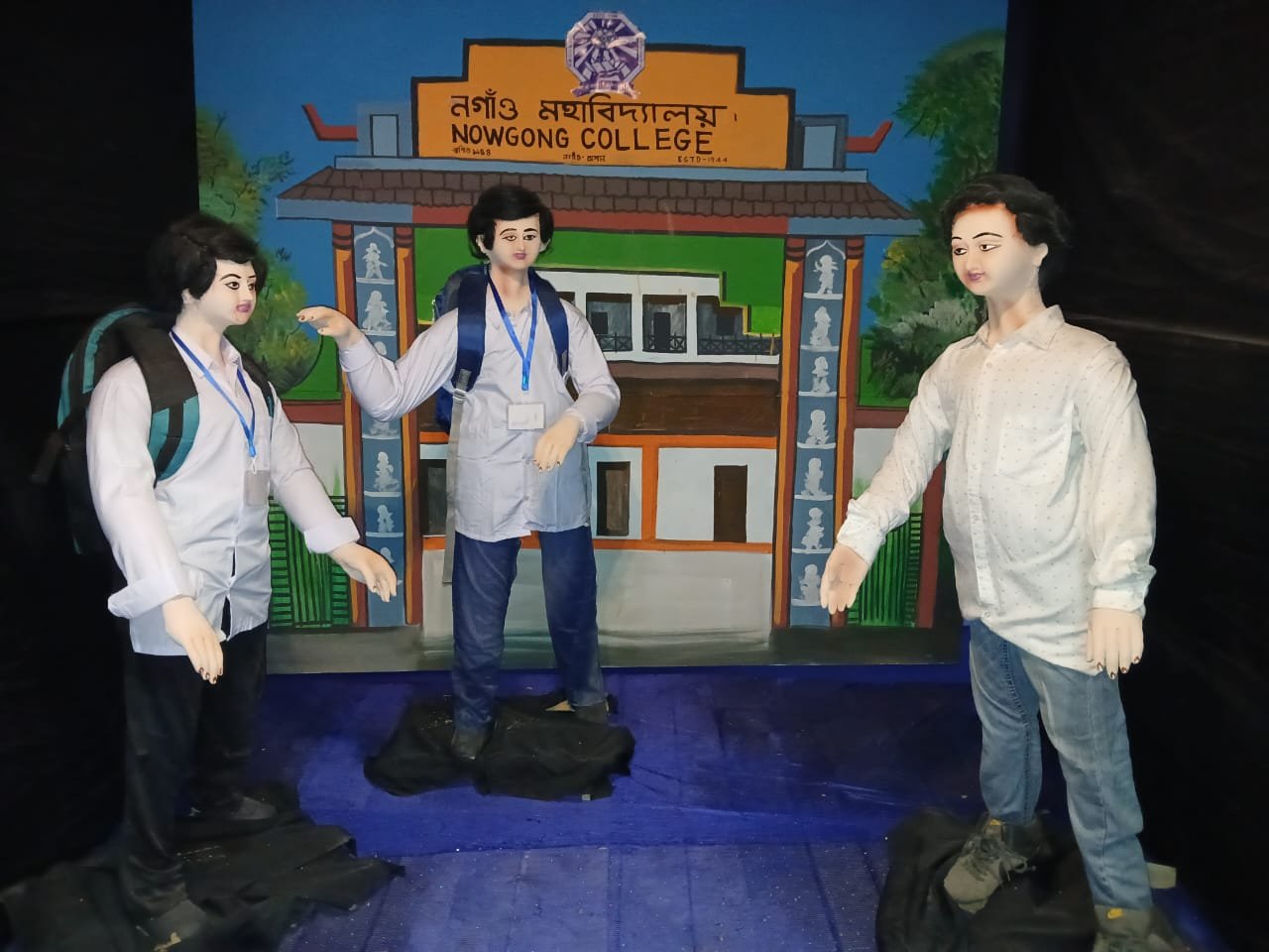 নগাঁও হিন্দু মিলন মন্দিৰ দুৰ্গোৎসৱ সমিতিৰ সভাপতি তথা বিশিষ্ট সমাজকৰ্মী প্ৰহ্লাদ চন্দ্ৰ বনিকে জানিবলৈ দি কয় যে সাম্প্ৰতিক সময়ত একাংশ কুলাংগাৰ সন্তানে নিজ পিতৃ মাতৃক অৱহেলিত কৰা নেতিবাচক ঘটনাৰ বিপৰীতে এজন সুযোগ্য সুপুত্ৰক এটি সন্তানে জন্ম লাভ কৰাৰ পিছৰ পৰা শিক্ষা গ্ৰহণ কৰি প্ৰতিষ্ঠিত হোৱালৈকে আৰু নিজে ঘৰ সংসাৰ পতাৰ পিছতো বৃদ্ধ পিতৃ মাতৃক যি পৰিচৰ্যা কৰে তাক উপজীব্য হিছাপে লৈ প্ৰতিমূৰ্তি আকাৰে সফল চিত্ৰায়ণ কৰিছে আৰু লগতে শিৱৰূপে মা দুৰ্গাৰ আৰাধনা কৰাৰ এক নতুন মাত্ৰা প্ৰদান কৰিছে৷