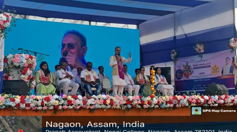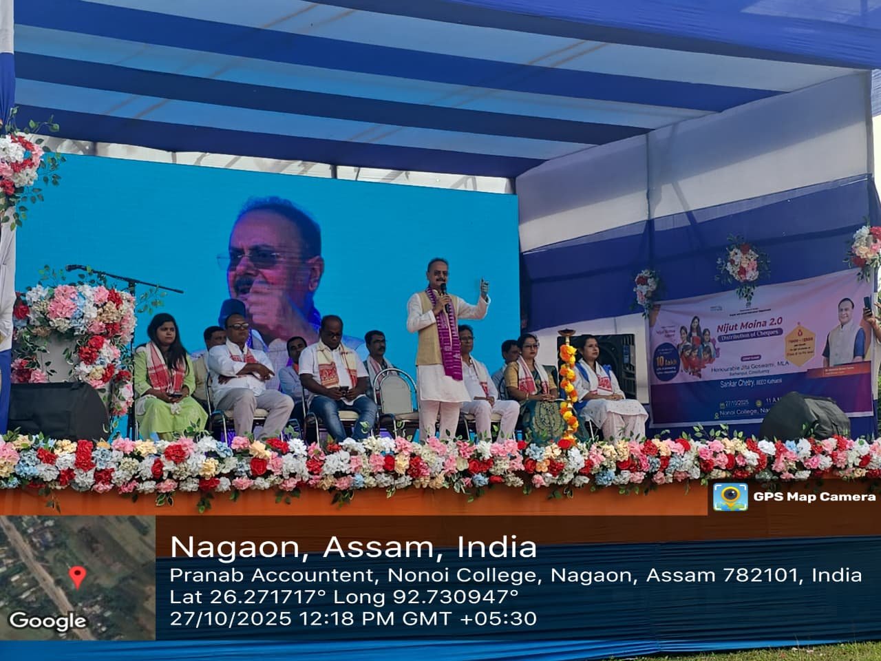 পুৱা ১১ বজাত বিধায়ক জিতু গোস্বামীয়ে বন্তি প্ৰজ্বলনেৰে চেক বিতৰণ কাৰ্যসূচী শুভাৰম্ভ কৰাৰ পাছতেই অসম চৰকাৰে কেন্দ্ৰীয়ভাবে আয়োজন কৰা নিযুত মইনা আঁচনি-২০২৫ৰ মূল কাৰ্যসূচীত মুখ্যমন্ত্ৰী ড° হিমন্ত বিশ্ব শৰ্মাই আগবঢ়োৱা মনোজ্ঞ ভাষণৰ পোনপটীয়া সম্প্ৰচাৰ ভিডিঅ’ কনফাৰেঞ্চৰ যোগেদি সকলোৱে প্ৰত্যক্ষ কৰে।