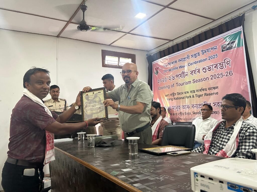 ORANG NATIONAL PARK: ‘দৈনন্দিন বাৰ্তা’ৰ সাংবাদিক সঞ্জয় লাহাক ওৰাং ৰাষ্ট্ৰীয় উদ্যানত ‘বন্যপ্ৰাণী সপ্তাহ’ উদযাপন অনুষ্ঠানত বিশেষ সম্বৰ্ধনা