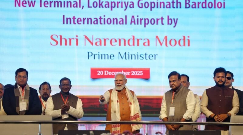 DD TIMES Dispur, December 20: Prime Minister Narendra Modi, who arrived in Assam this afternoon on a two-day visit, today inaugurated the newly constructed terminal of the Lokapriya Gopinath Bardoloi International Airport in Guwahati in the presence of Governor Lakshman Prasad Acharya and Chief Minister Dr. Himanta Biswa Sarma. The Prime Minister also unveiled a statue of Bharat Ratna Lokapriya Gopinath Bardoloi at the entrance of the new terminal complex.