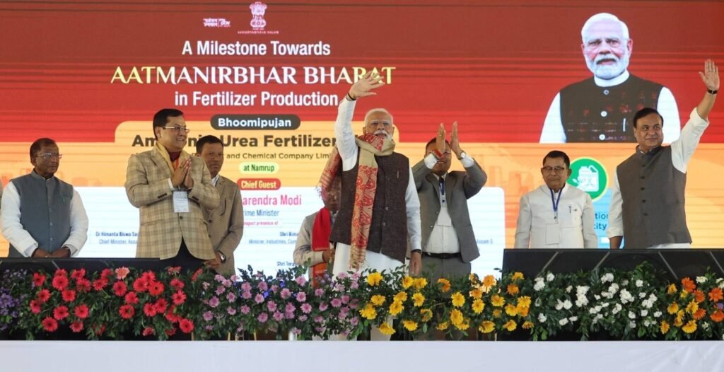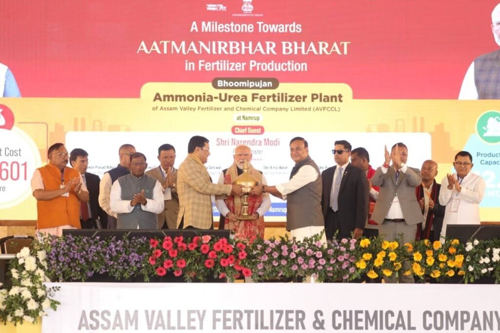 DD TIMES Dispur, December 21: Taking a giant step towards building a self-reliant Assam and India through fertilizer production, Prime Minister Narendra Modi today laid the foundation stone of the Ammonia–Urea Fertilizer Project of Assam Valley Fertilizer and Chemical Company Limited at Namrup.