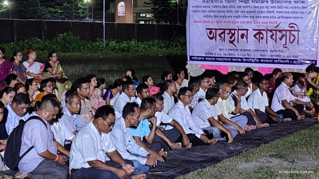 শিল্পী জুবিন গাৰ্গৰ ৰহস্যজনক মৃত্যুৰ ন্যায় আৰু তদন্তৰ দাবীত বঙাইগাঁৱত অৱস্থান ধৰ্মঘট